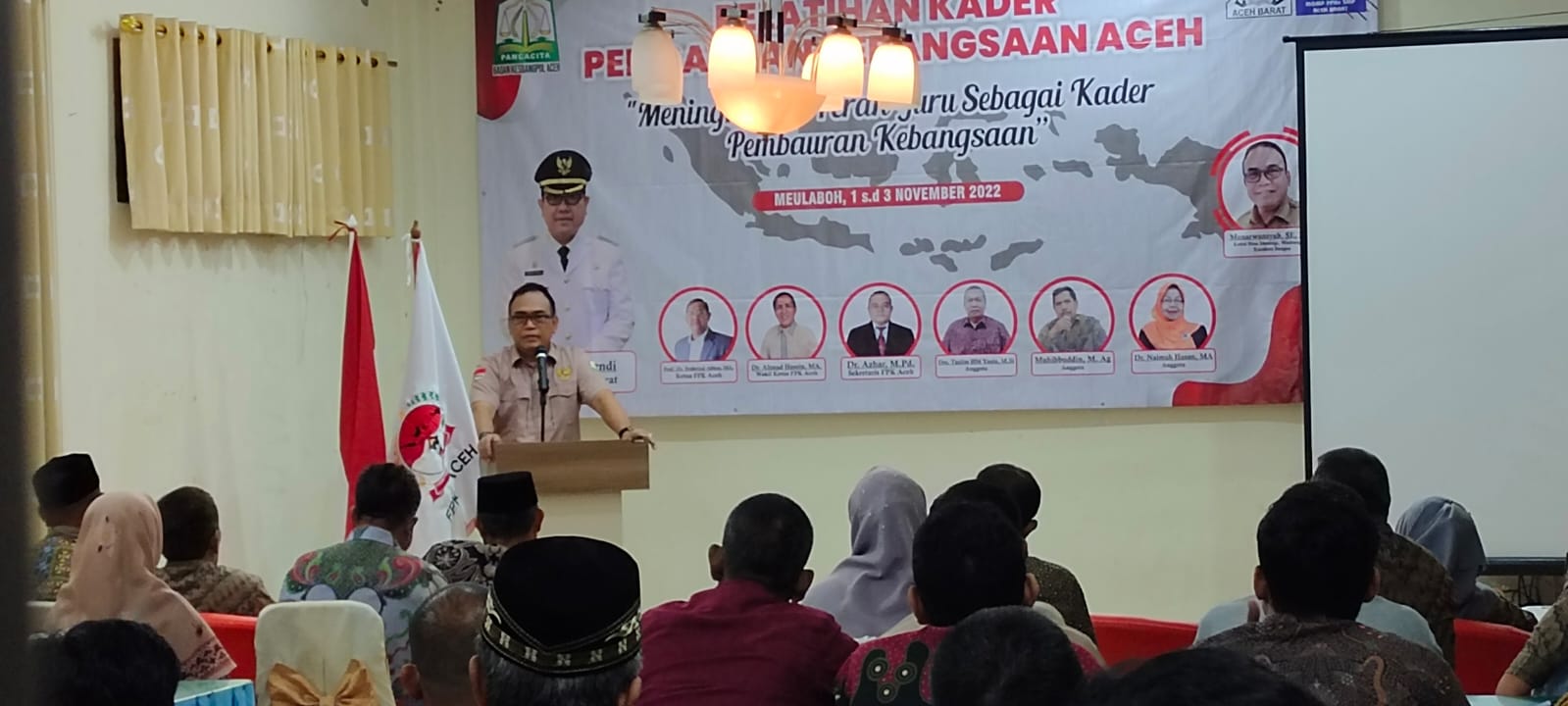 Turut hadir dalam kegiatan tersebut Plh. Kepala Badan Kesbangpol Aceh diwakili Kabid Bina Ideologi, Wasbang dan Karakter Bangsa, Munarwansyah, SE., MM., Ketua Forum Pembauran Kebangsaan (FPK) diwakili wakil Ketua, Dr. Ahmad Husein, Kepala Badan Kesbangpol Aceh Barat, para narasumber, serta para tenaga pendidik peserta pelatihan.